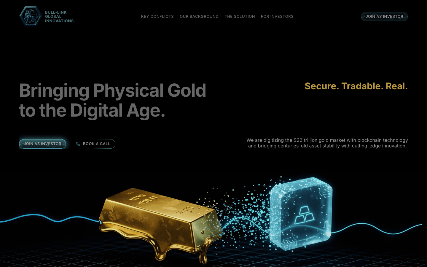 Gold-backed assets on the blockchain, a high-stakes investor-facing site that needed to feel trustworthy from the first scroll. Loved the challenge.