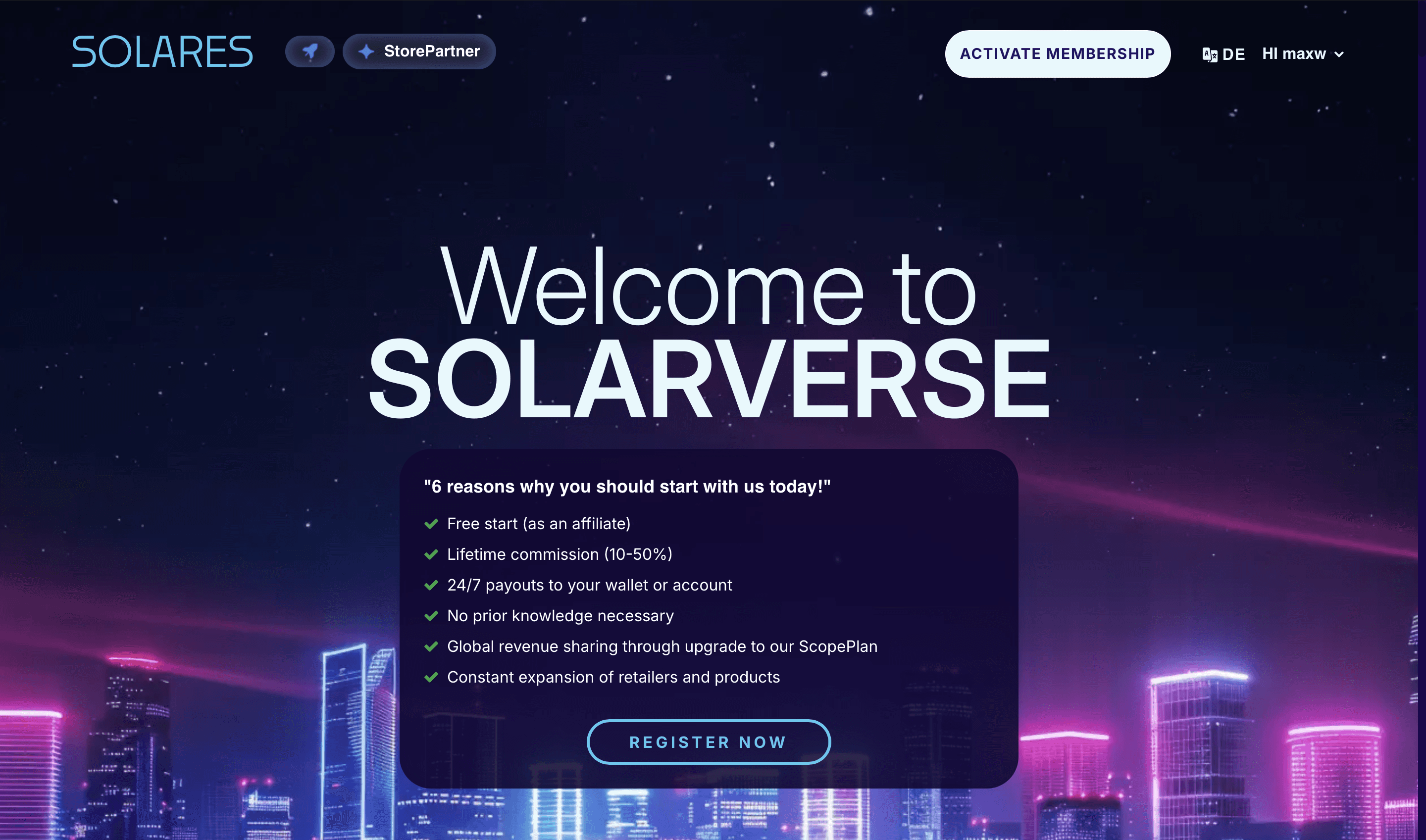 The hub for the entire Solares Web3 ecosystem — a network marketing platform built around community and sustainable investment. Got to work on something genuinely forward-thinking.