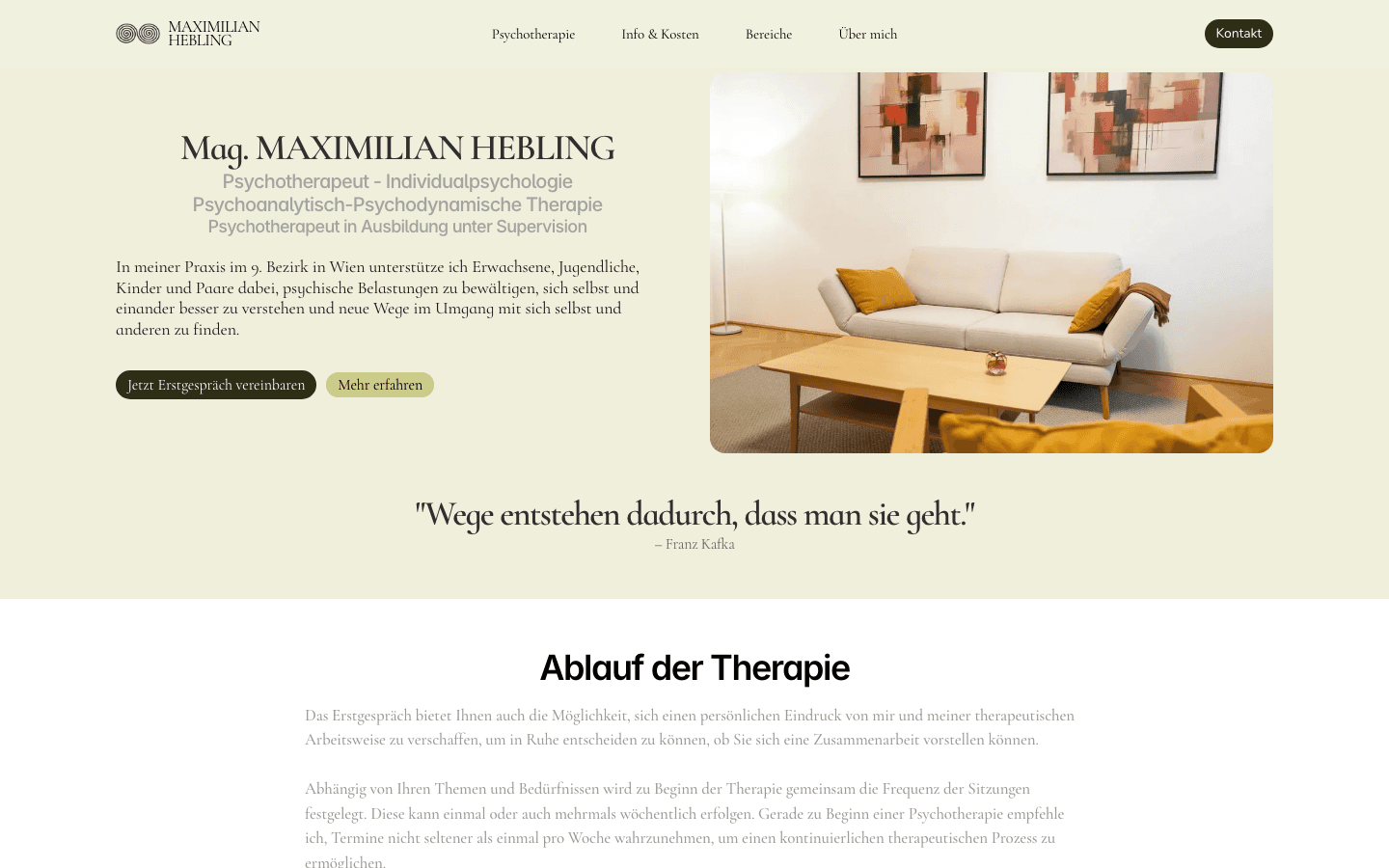 Built was for a psychotherapist in Vienna. Helping people feel safe starts with a first impression and we really loved making sure his site nailed that.